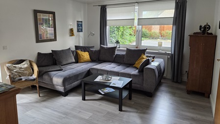 Helle, Freundliche Wohnung für bis zu 4 Personen im Erdgeschoss. Ausgestattet mit 2 Schlafzimmern, großem Wohnzimmer, seperater Küche, Duschbadezimmer und eigener Terrasse.
